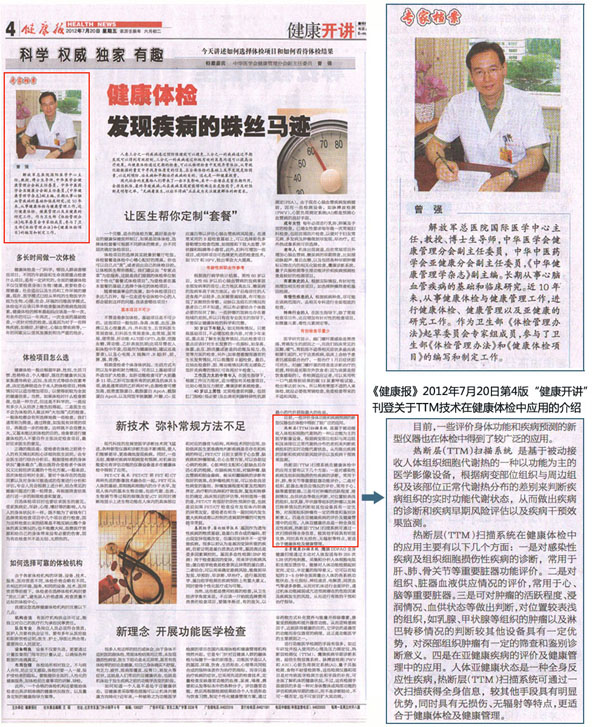 2012年7月20日第4版《健康報(bào)》“健康開(kāi)講” 刊登關(guān)于TTM技術(shù)在健康體檢中應(yīng)用的介紹