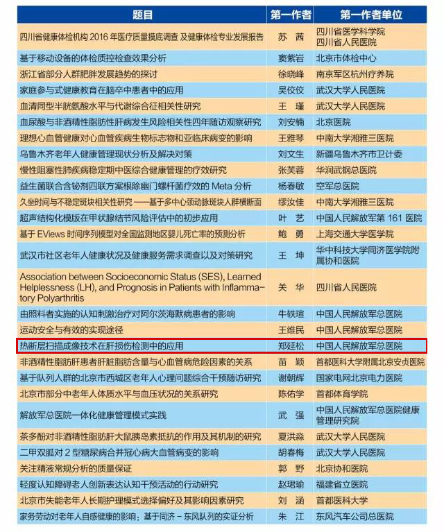 第十一屆中國健康服務業(yè)大會暨中華醫(yī)學會第九次全國健康管理學學術會議論文評審公示順利結束,期間共收到投稿3633篇,經過15個小組的審稿專家審稿以及8月8日的終審會評審,大會共評選出優(yōu)秀論文28篇,青年優(yōu)秀論文34篇,優(yōu)秀提名145篇。
